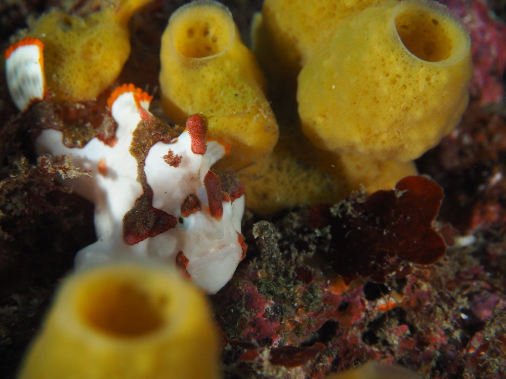 白黒クマドリカエルアンコウやニシキフウライウオ、モンハナシャコなどに出会えました♪