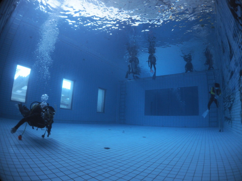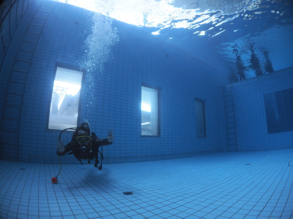 プールは平日なのでとても混んでいましたが、午前中であれば深場が空いています
