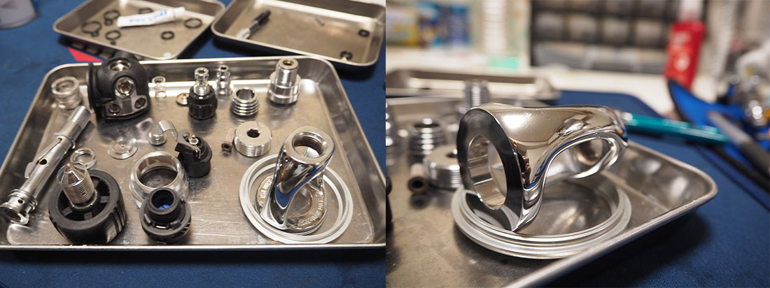 レギュレーターはメーカーによりーバーホールごとに交換するパーツが決められており、オーバーホール時にこれらを交換しながらなるべく新品に近い状態にしていきます。